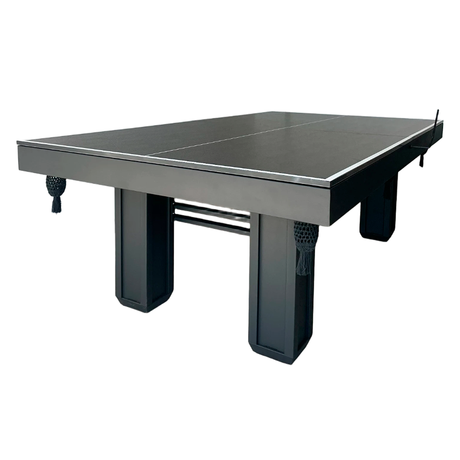 La tapa multifuncional permite usar la mesa de Pool como mesa de Ping Pong y mesa de reuniones, medidas 2.5×1.4m incluye todos los accesorios de Pool y Ping Pong, también los soportes para guardar las tapas cuando juegas al Pool.