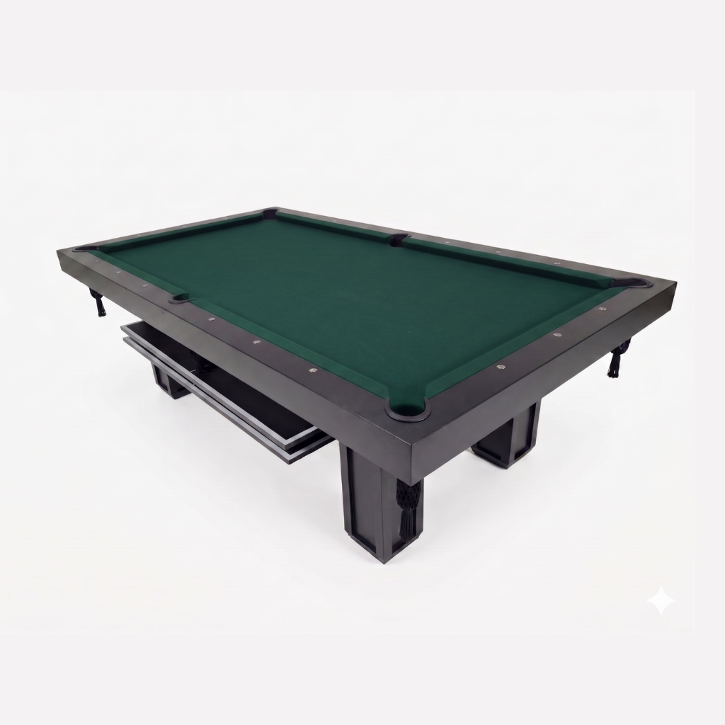 La mesa BlackSteel® está pensada para quienes buscan un rendimiento profesional, diseño robusto y cero mantenimiento. Su ingeniería combina precisión técnica, durabilidad garantizada y jugabilidad superior, asegurando partidas siempre parejas y una presencia imponente en cualquier espacio. Con líneas modernas, componentes de alta gama y una construcción diseñada para durar décadas, representa la evolución de la mesa de pool tradicional, con sello argentino y calidad garantizada por 10 años.
